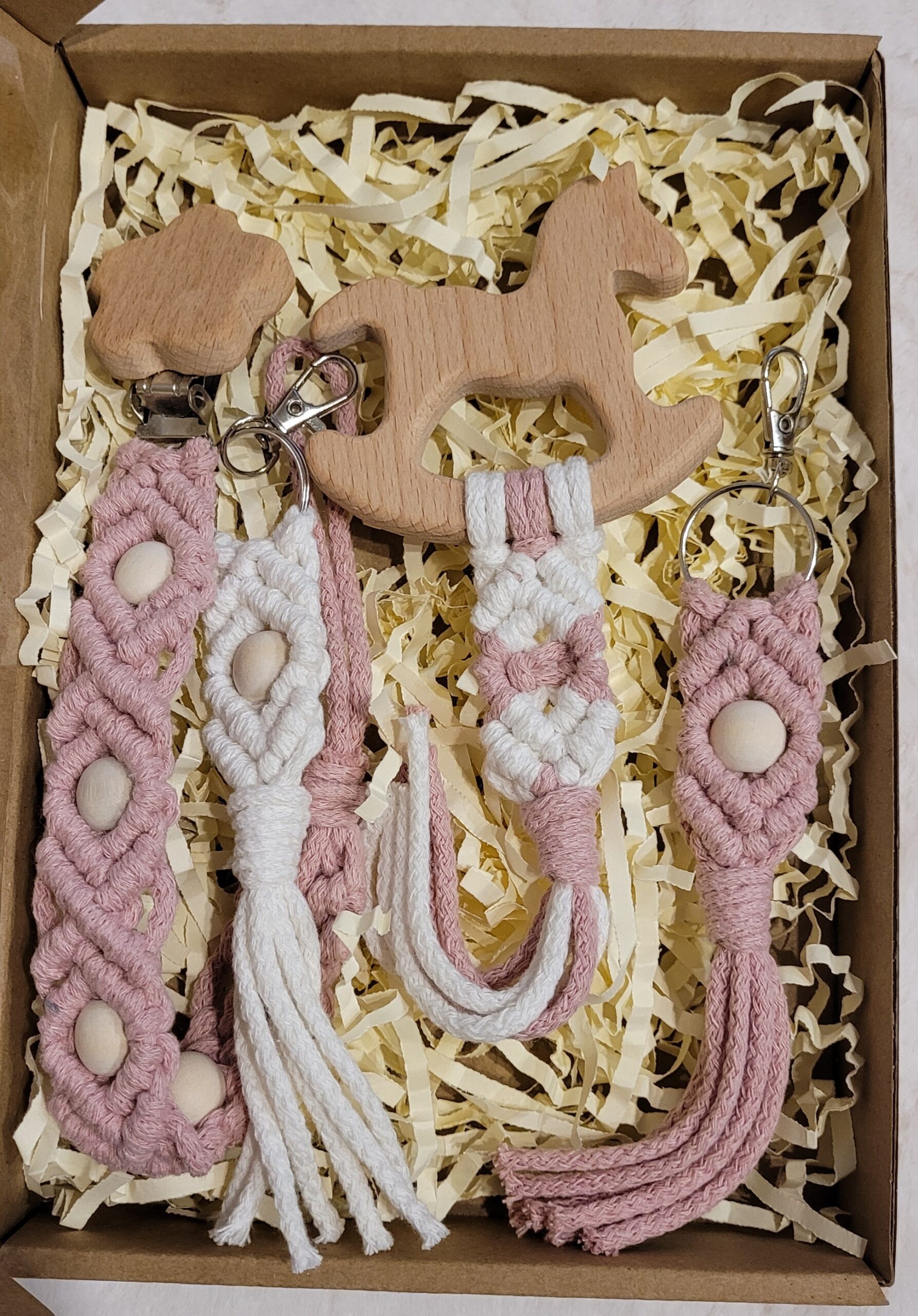 Zestaw rodzinny makrama konik to piękny i niepowtarzalny prezent dla malucha, jak i gratulacje dla mamy i taty.